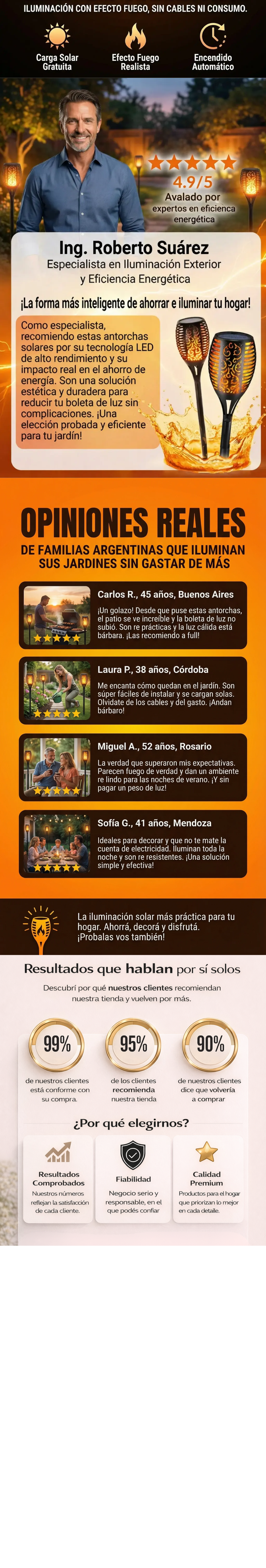 ✨ La Solución Mágica: Nuestras Antorchas Solares Estaca. Recrean el movimiento real de una llama, creando un ambiente calido, acogedor y super elegante desde la primera noche. Sin mantenimiento, sin instalaciones y sin pagar luz.